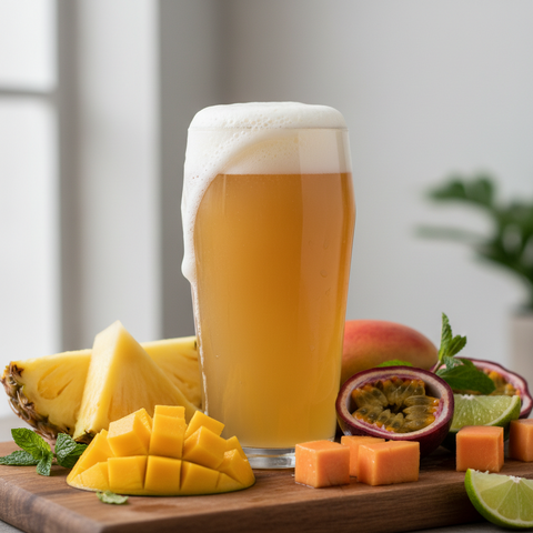 La Tropical IPA est une évolution moderne de l’American IPA, née avec le mouvement craft américain. L’idée : mettre en avant les houblons aromatiques riches en esters fruités et terpènes, souvent cultivés aux États-Unis, en Nouvelle-Zélande ou en Australie.
